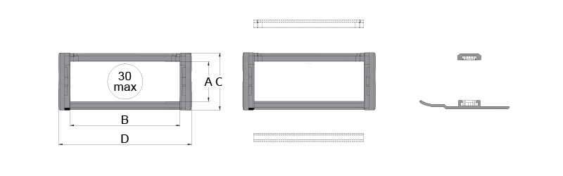 | MODEL | Inner Height (mm) | Inner Lenght (mm) | Outter Height (mm) | Outter Lenght (mm) | Bending Radius | Weight Kg/Mt |